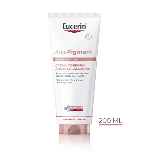 Eucerin Anti-Pigment Crema corporal para áreas localizadas sirve para tratar las manchas oscuras, las pequeñas áreas de hiperpigmentación postinflamatoria y la piel gruesa de las zonas de fricción (rodillas, codos).