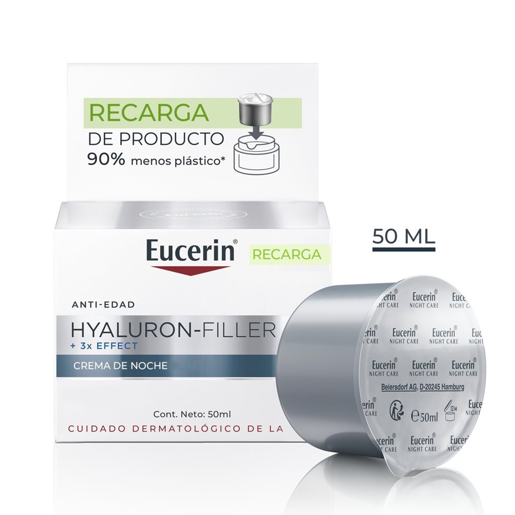 La piel se regenera durante la noche. Además de hidratar la piel, las cremas de noche contienen ingredientes que estimulan el proceso de regeneración celular. El principio activo de Eucerin Hyaluron-Filler Noche es el dexpantenol, que favorece la regeneración de la piel durante la noche.