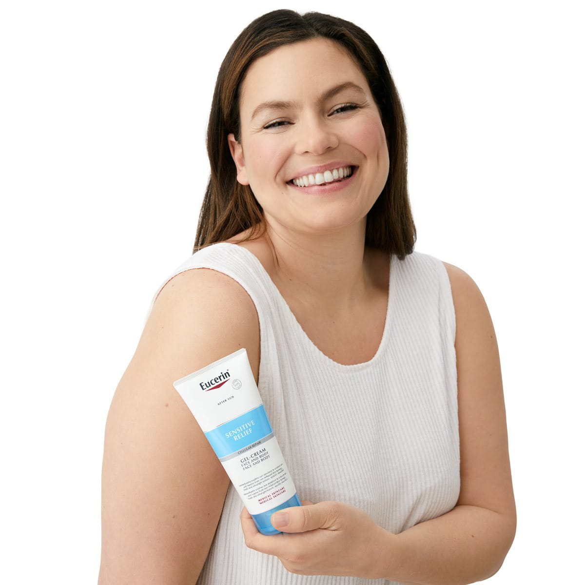 Eucerin Sun Gel-Crema After Sun es un producto after sun para piel sensible y propensa a las alergias solares. Calma y ayuda a regenerar la piel dañada por el sol.