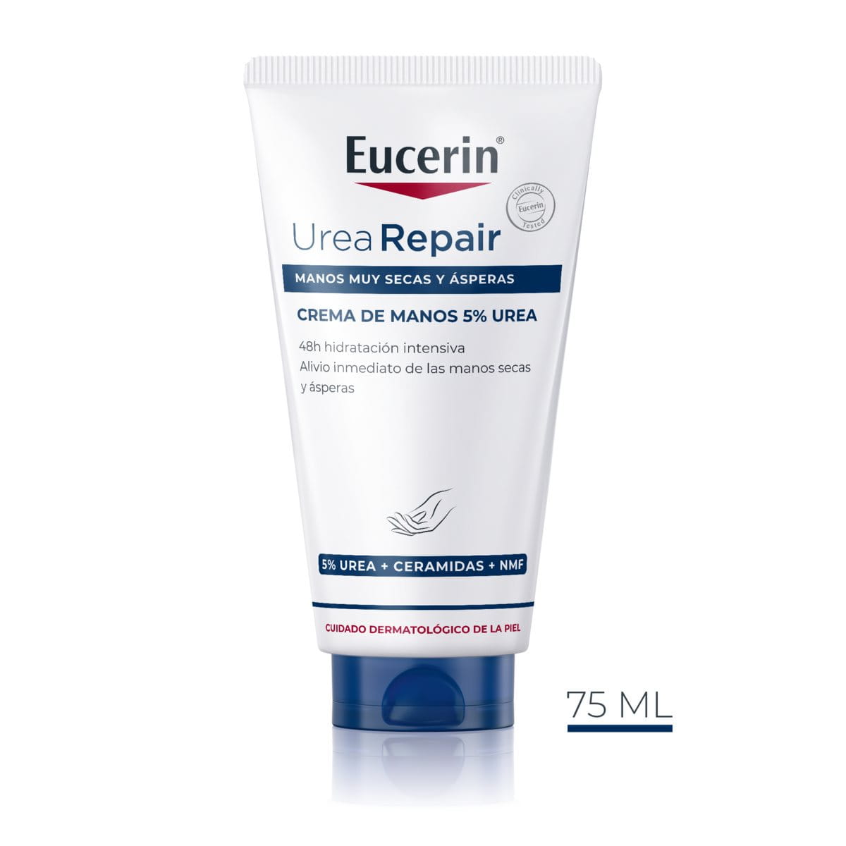 Nuestra crema de manos específica se absorbe con facilidad, no es grasa y contiene el equilibrio de los ingredientes necesarios para facilitar la protección de la piel y evitar la deshidratación. UreaRepair Crema de Manos 5% Urea ofrece un alivio inmediato y duradero (hasta 48 horas) para la piel seca, calma el enrojecimiento y suaviza la piel rugosa, conservando las manos suaves e hidratadas, incluso con lavados de manos frecuentes.