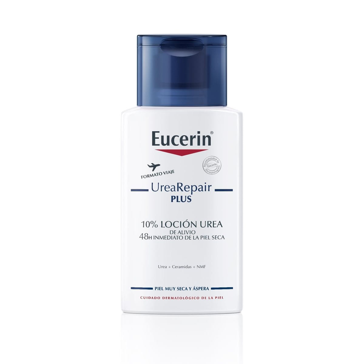 Eucerin Lotion UreaRepair PLUS 10% Urea contiene una alta concentración de Urea y de otros NMF (para retener el agua en la piel) y ceramida (para reparar la barrera dérmica y reducir la pérdida de hidratación). La fórmula da un alivio inmediato y continúa actuando, retrasando los síntomas de piel seca (como picor y descamación) incluso durante 48 horas.