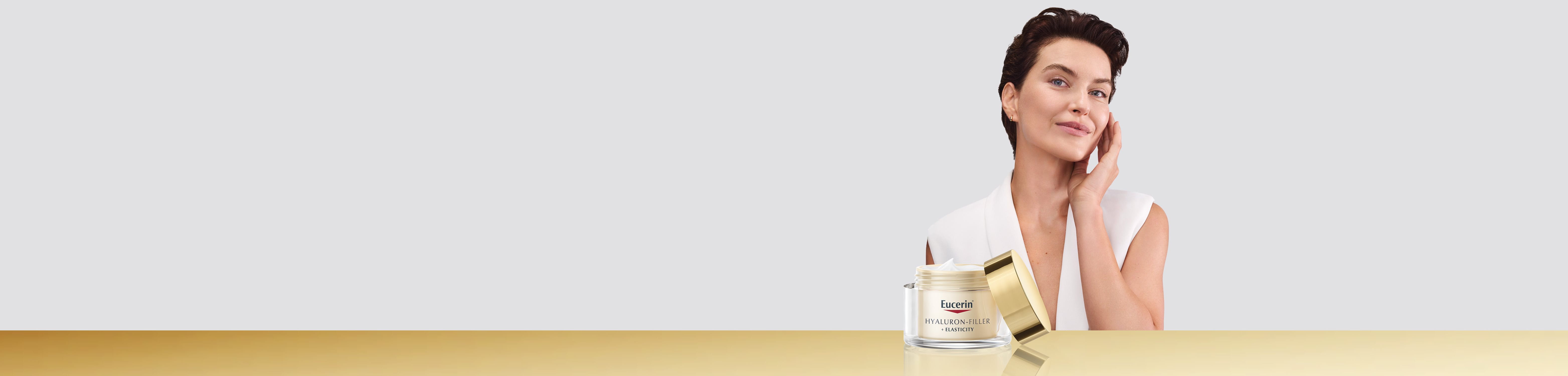 Su fórmula exclusiva combina Ácido Hialurónico de alto y bajo peso molecular para rellenar de manera visible las arrugas más profundas. Collagen-Elastin Complex, una potente combinación de Arctiina y Creatina, que estimula la producción de colágeno y mejora la elasticidad de la piel. Thiamidol®, patentado por Eucerin, reduce las manchas de la edad y evita su reaparición. Para una piel más lisa, radiante y visiblemente más joven.
